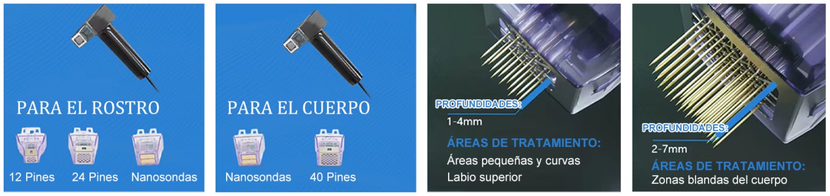 Las sondas flexibles e intercambiables permiten un tratamiento preciso para las diferentes necesidades de la piel.